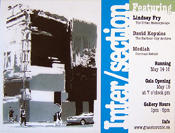 part of a group exhibition, "Intersection," opening at 7pm